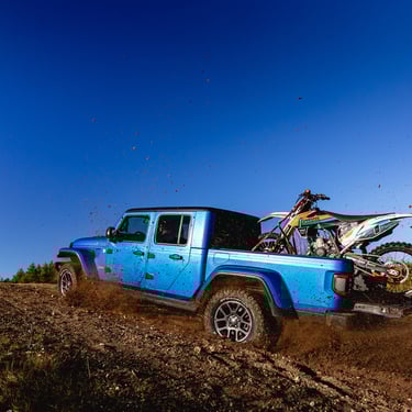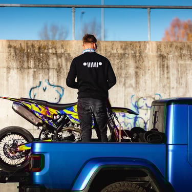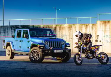 Photo and video shoot with Jeep Gladiator. We showcased this spectacular cars real personality - road and off-road king. With this vehicle we took our bikes to stunt riding and motocross tracks repesent that this car could be a good companion in every mission.
